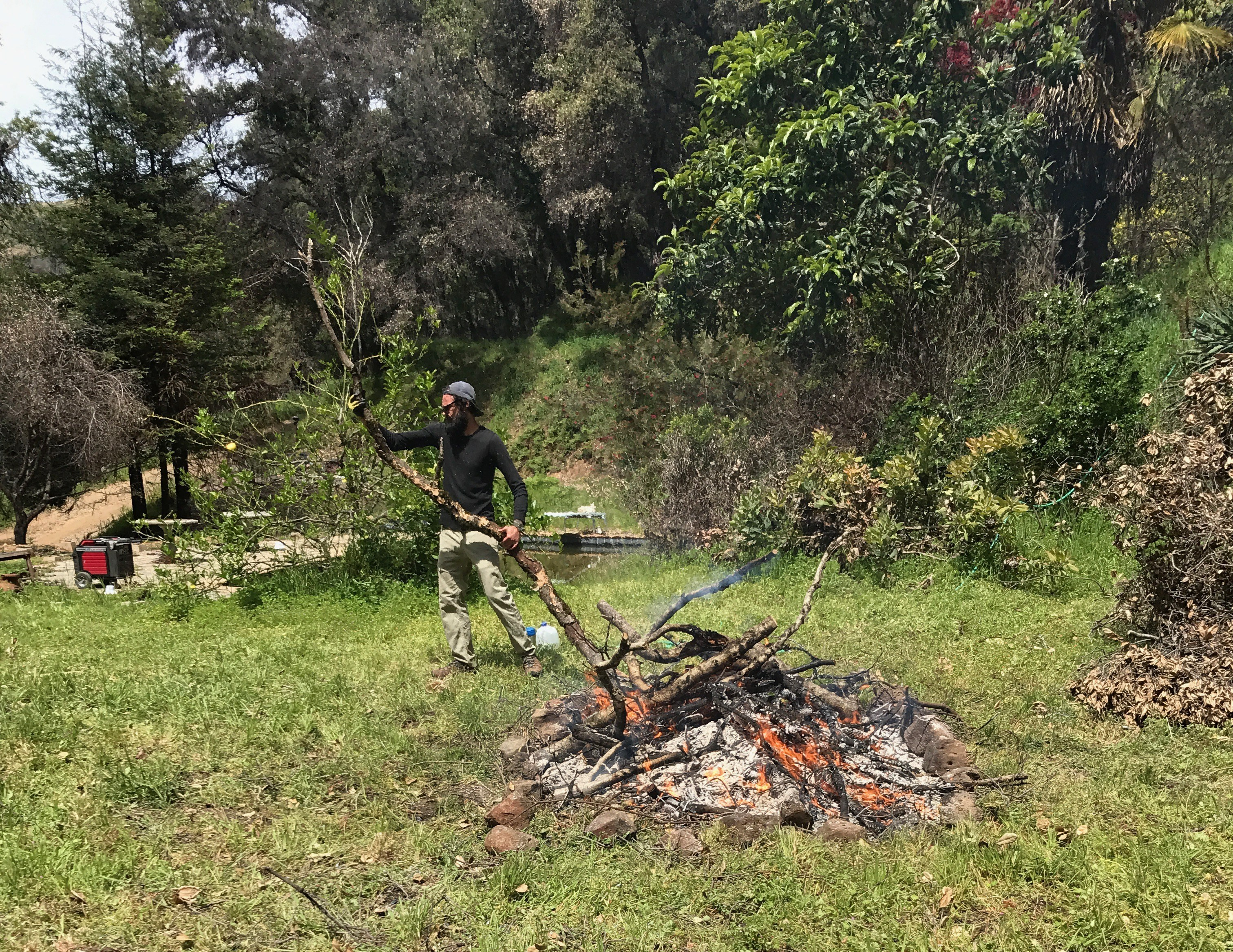 Tim breaking and dragging brush to the burn pile.
