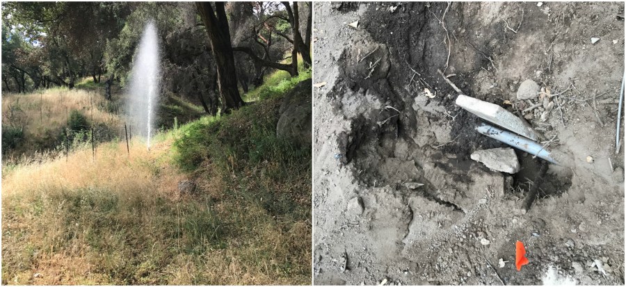Left: yep, that’s a leak. Right: some are only discovered with digging at the sites of structures destroyed in the fire.